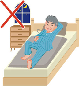 お腹いっぱいの状態で就寝すると、消化のために眠っている間も胃腸が活発に働き、夜中に目が覚めたり、睡眠の質が低下したりします。消化してから寝つくように、夕食は就寝の2時間前までに済ませて、寝る直前は食べないようにしましょう。