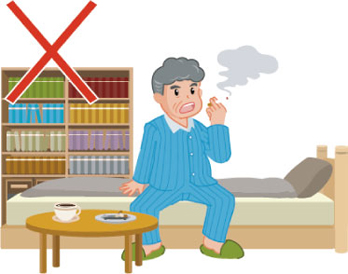 お茶やコーヒーなどに含まれるカフェインには覚醒作用があり、4~5時間も持続するため、寝る前に飲むとかえって目が覚めてしまいます。また、タバコに含まれるニコチンも寝つきを悪くします。カフェインの多い飲み物やタバコは寝る前には控えましょう。